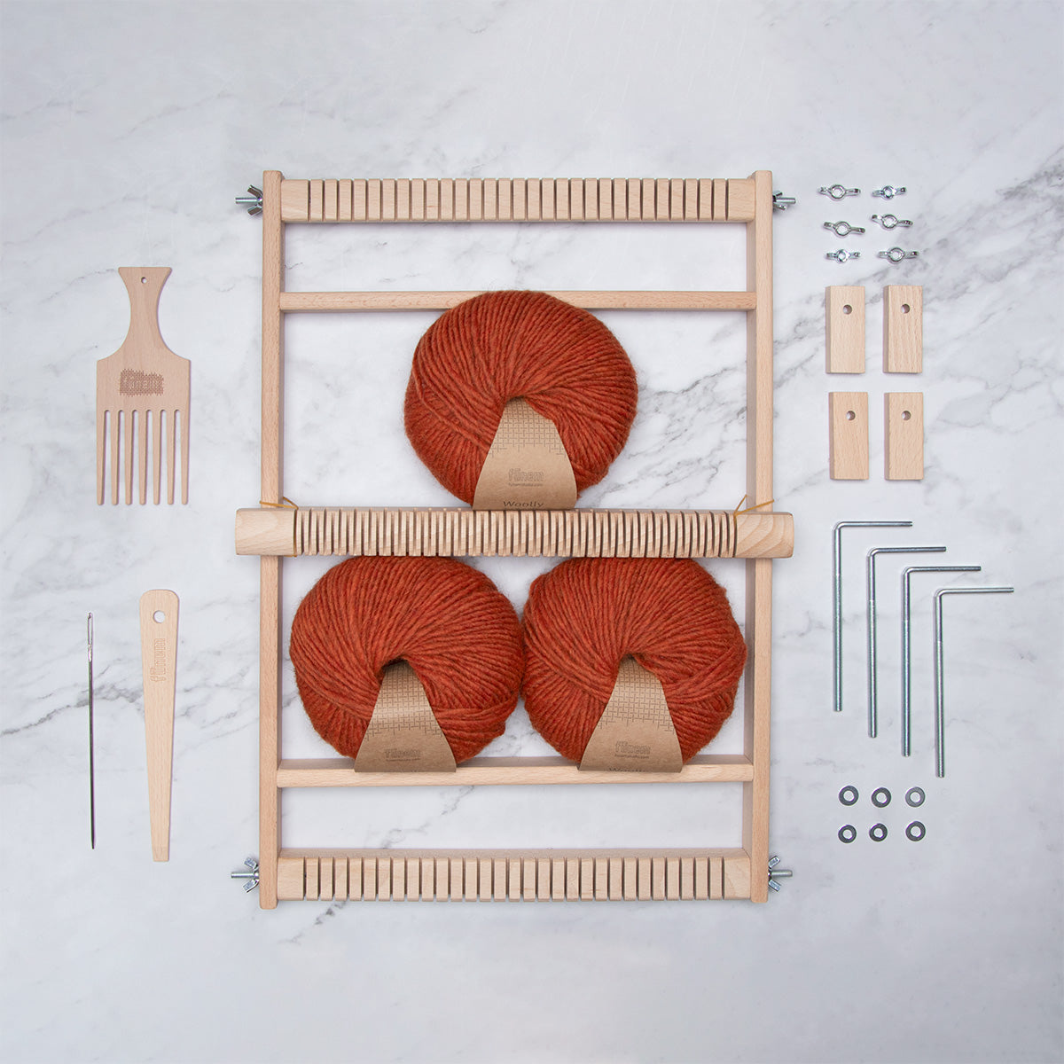 We've got you covered! Each kit comes with everything you need: a loom (optional), a carefully selected mix of fibers, essential tools, and a digital guide with clear instructions.